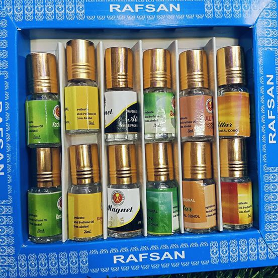 Product details of 12 pieces halal attar12 pcs Attar Combo Pack/ perfume Ator /Ayna Ator-(3ml each bottle) (MAGNET,KACHA BELI,SHAHI DARBAR,BOKUL FUL,ROJONI GANDHA,GULE LALA)
